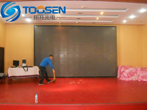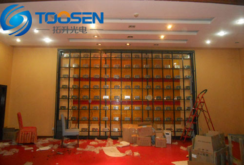P6室內(nèi)全彩LED顯示屏是固定安裝在內(nèi)蒙古烏海市湖南會(huì)館酒店內(nèi)部,主要用來(lái)在酒店舉行婚慶做背景使用。上圖為前期施工和安裝現(xiàn)場(chǎng),從圖片上看P6室內(nèi)全彩LED顯示屏鋼結(jié)構(gòu)基本上目前已經(jīng)焊接施工完畢。電源也都已經(jīng)全部固定在鋼結(jié)構(gòu)的方通上,為了能讓電源更安全的供電,全部采用用螺絲固定。然后就是要連接好電源與模組間的電源線,為了提高電源更穩(wěn)定的供電,選擇一個(gè)電源給8個(gè)模組供電。接下來(lái)就是要進(jìn)行P6室內(nèi)全彩LED顯示屏模組拼接。